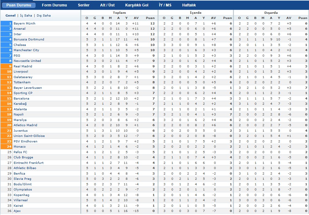 Şampiyonlar Ligi puan durumu, Galatasaray kaçıncı sırada? Şampiyonlar Ligi son puan durumuUEFA Şampiyonlar Ligi 5. haftasının ilk gününde 9 karşılaşma oynandıktan sonra gözler puan durumuna çevrildi.
